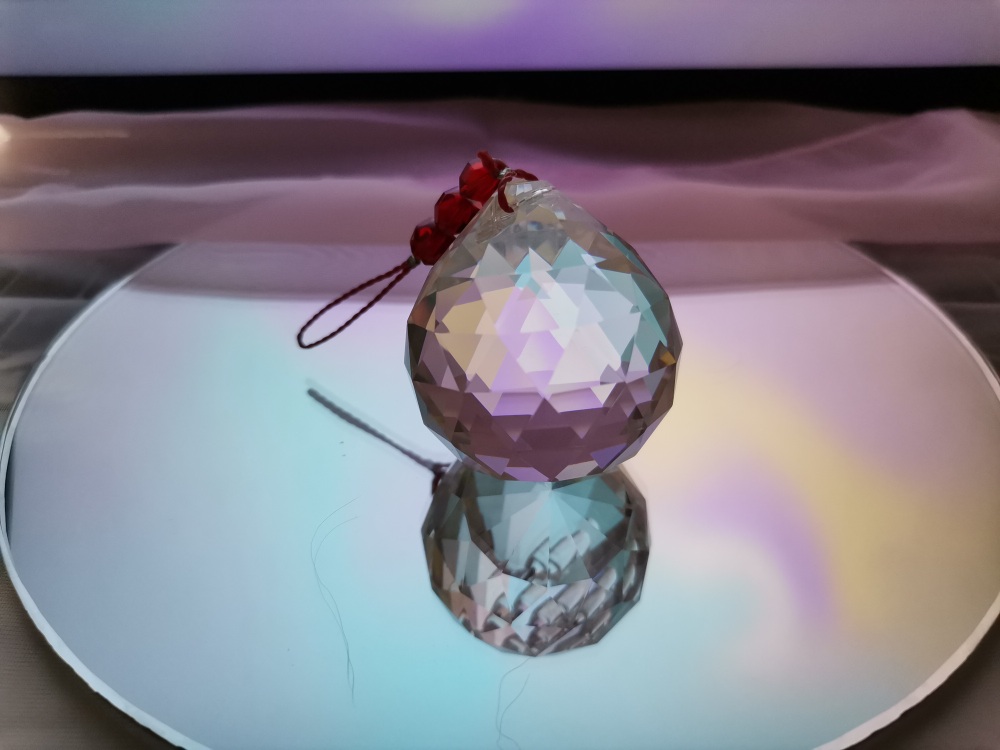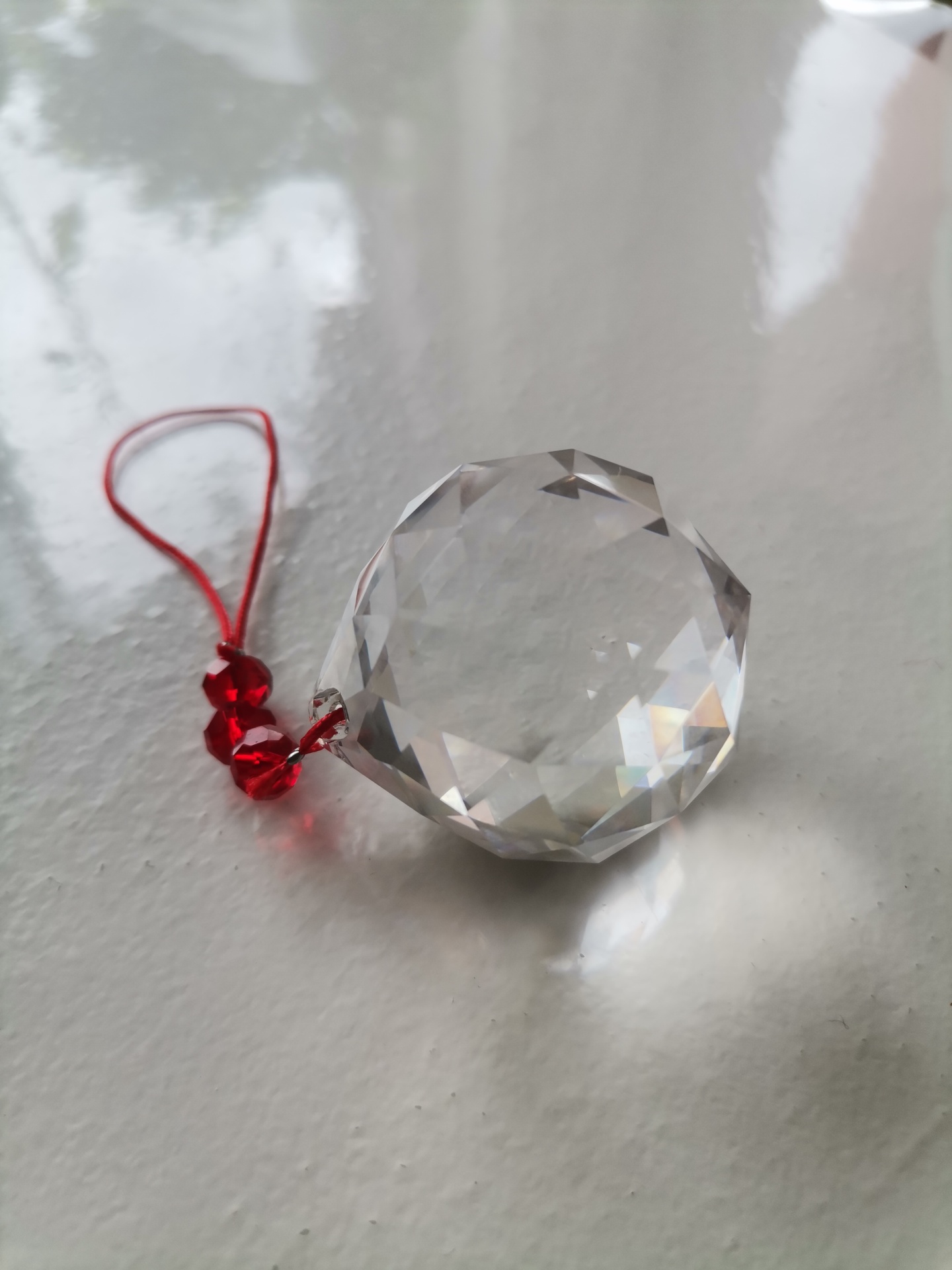 Cristal Egípcio Asfour, esfera de Feng Shui de 40mm de diâmetro, tem 108 faces. É feita com uma liga de vidro com chumbo a 30% (cristal)